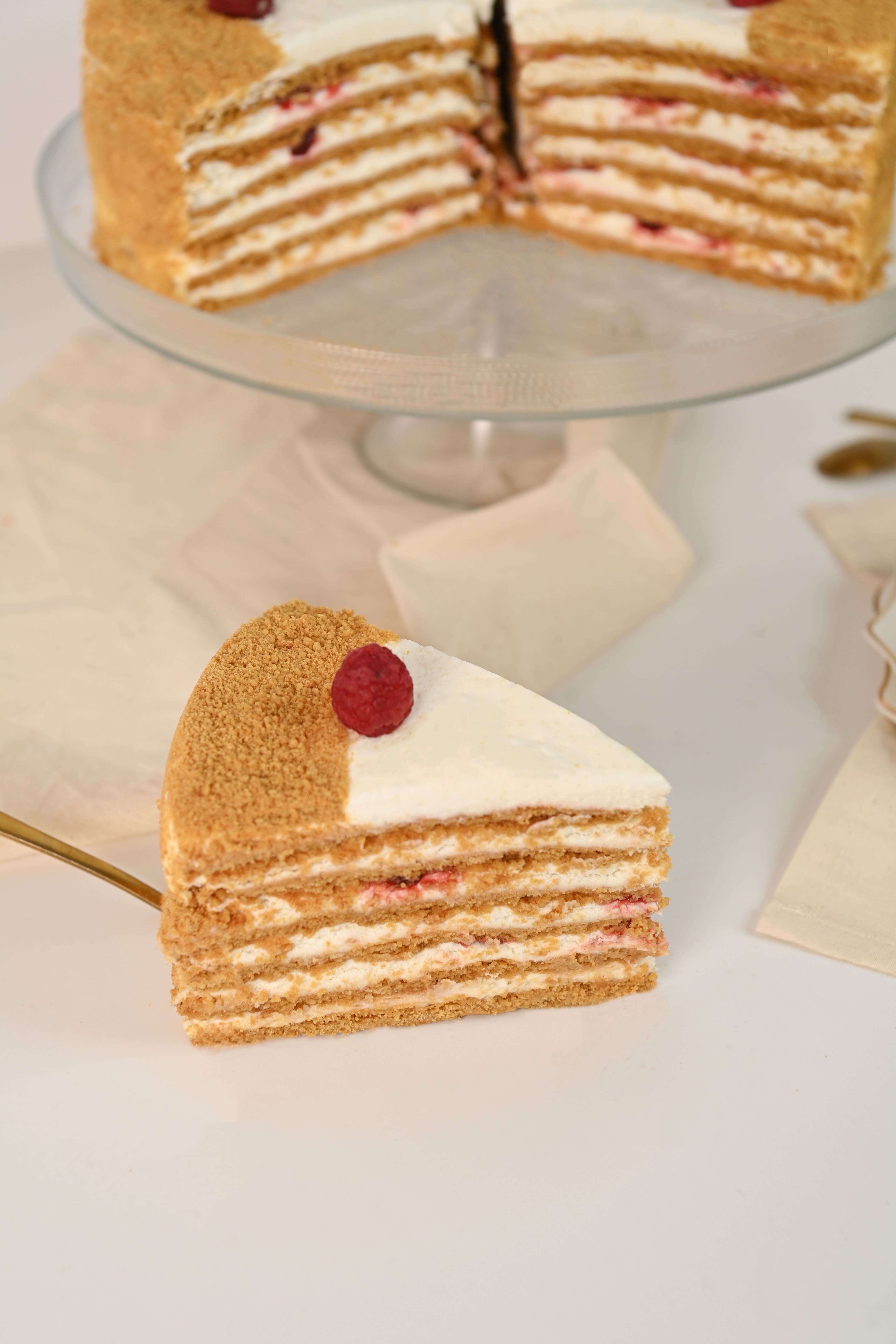 كيكة العسل،طبقات خفيفة مشببعة مع طبقات التوت
