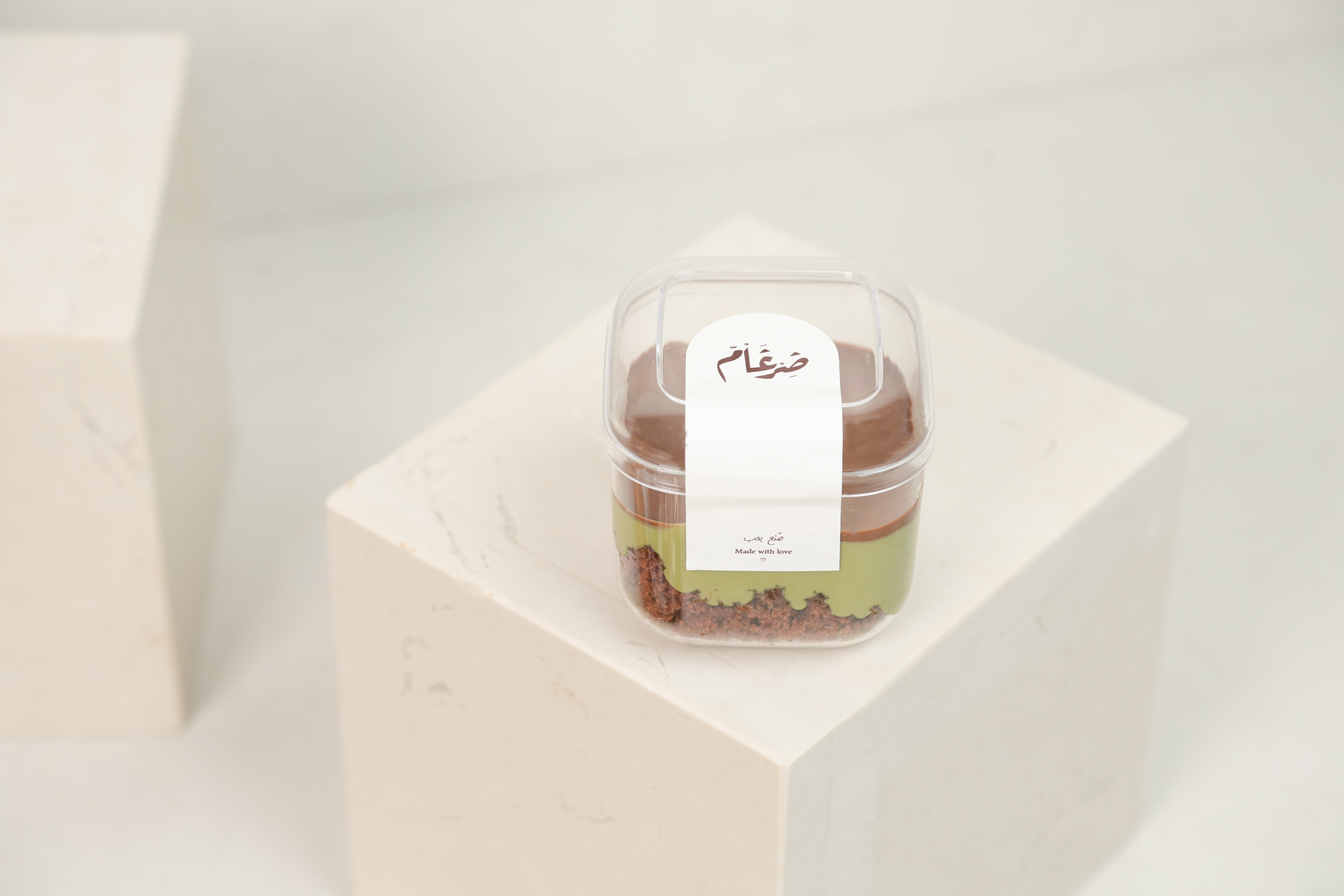 طبقات من الكيك مع البستاشيو وكنافة الشوكلت