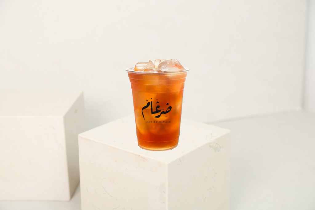 قهوة مختصة مقطرة بالماء والبن امختص ومكعبات الثلج